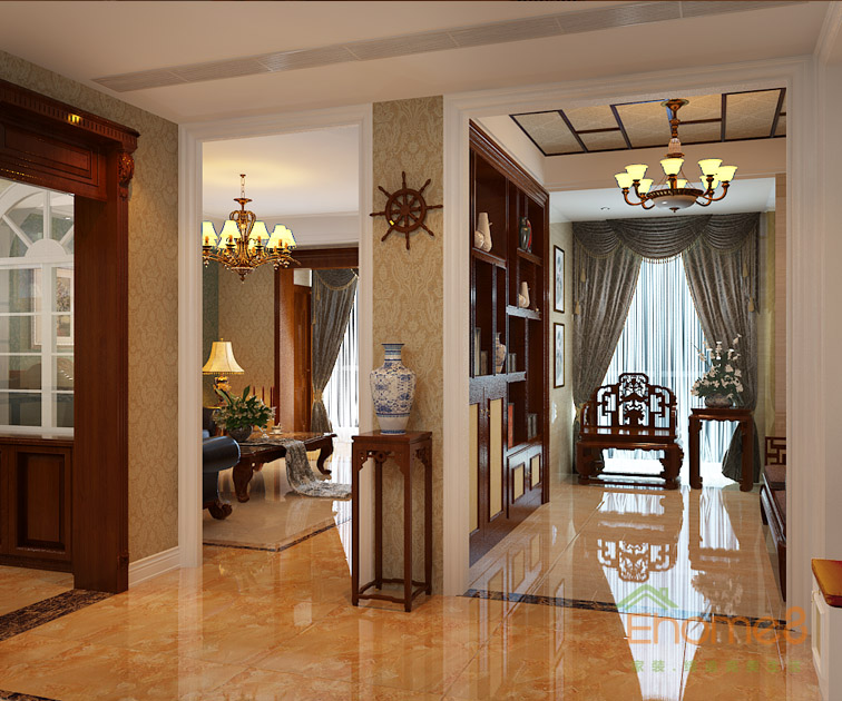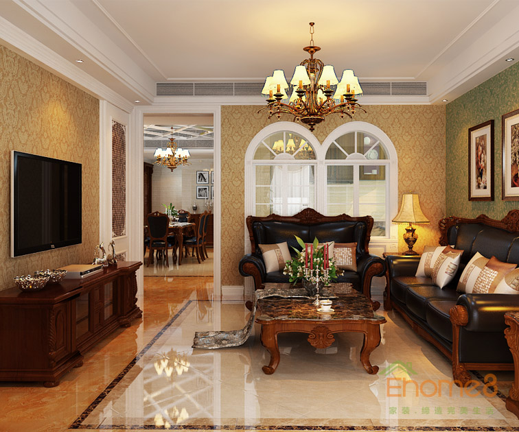 彩虹城三房一廳113㎡客廳田園風格裝修效果圖