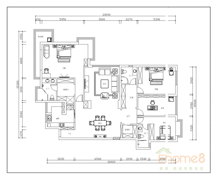 書香園99平米三房一廳中式餐廳廚房裝修效果圖