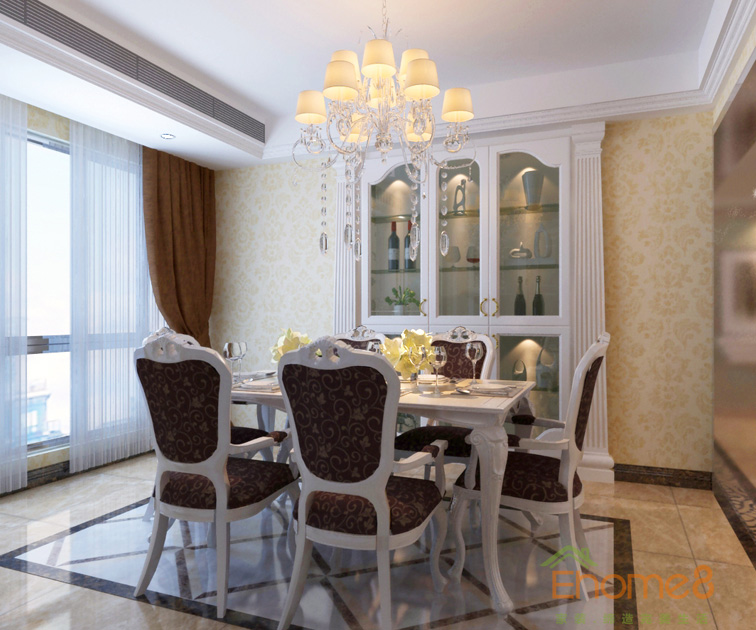 書香園三房一廳108㎡歐式簡約裝修效果圖