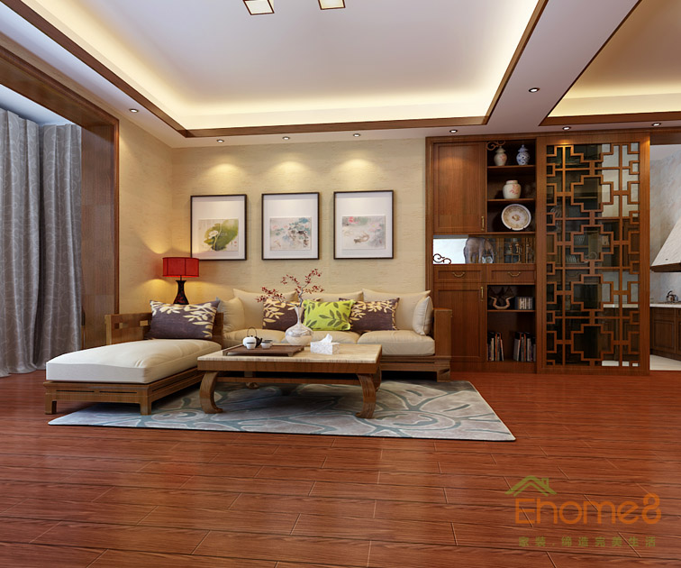 桃源居93㎡三房一廳中式風格裝修效果圖