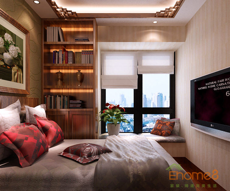陽光100城市廣場37㎡小戶型中式風(fēng)格裝修效果圖