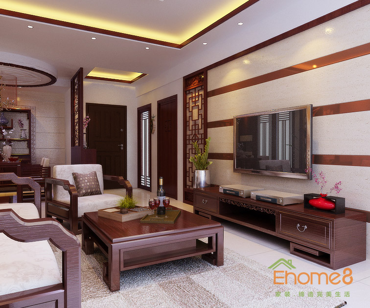 大城小院72㎡兩房一廳中式原木風格裝修效果圖