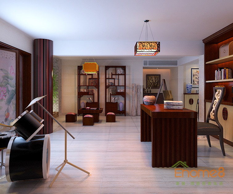 中式紅木裝修書房效果圖