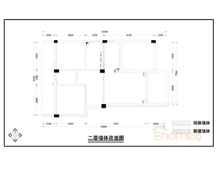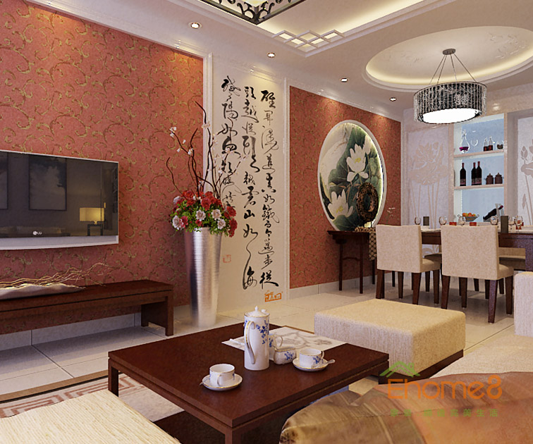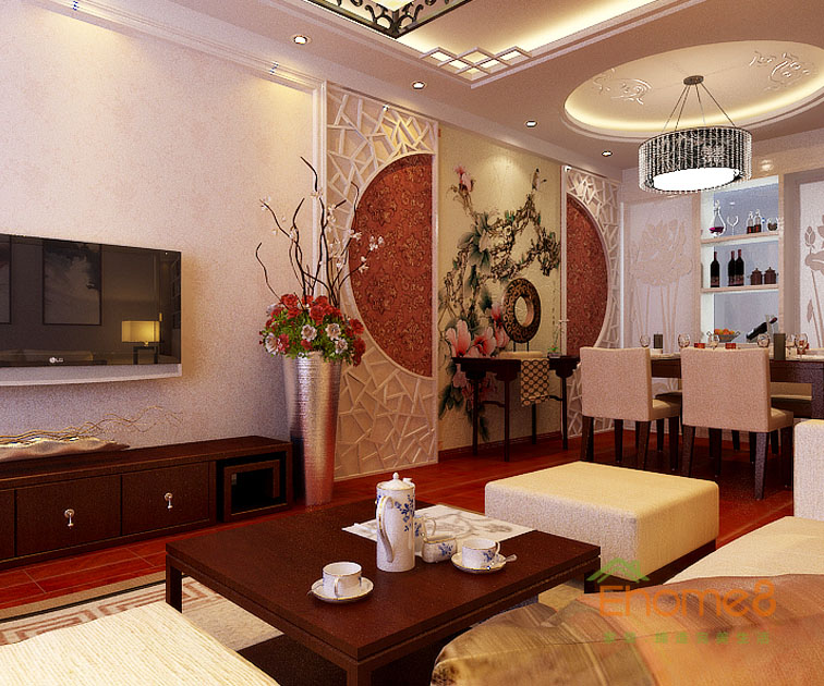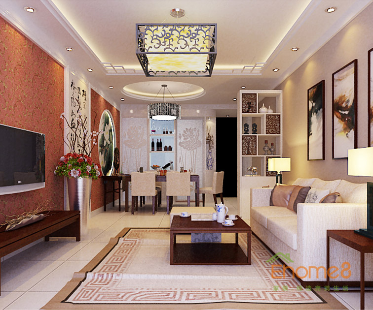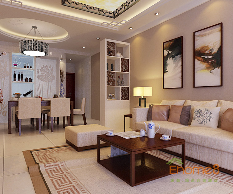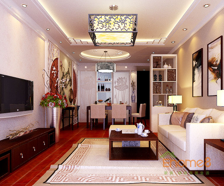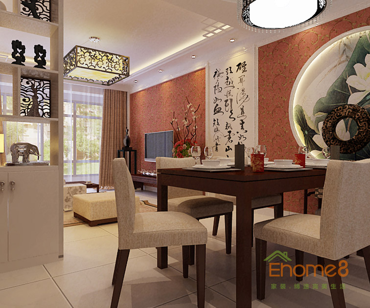 在水一方78㎡兩房一廳中式中國風裝修效果圖