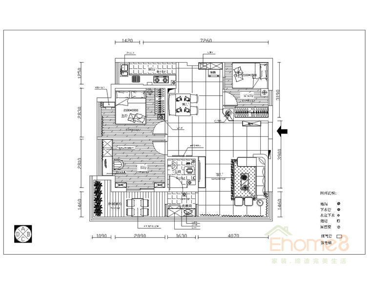 山語城76㎡兩房一廳美式風格裝修效果圖