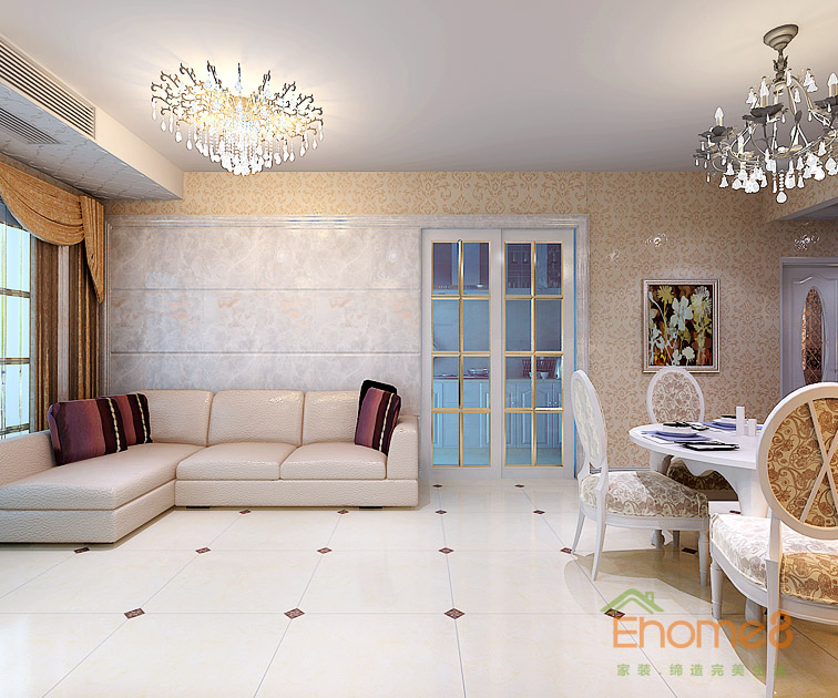 康城71㎡兩房一廳歐式風格裝修效果圖