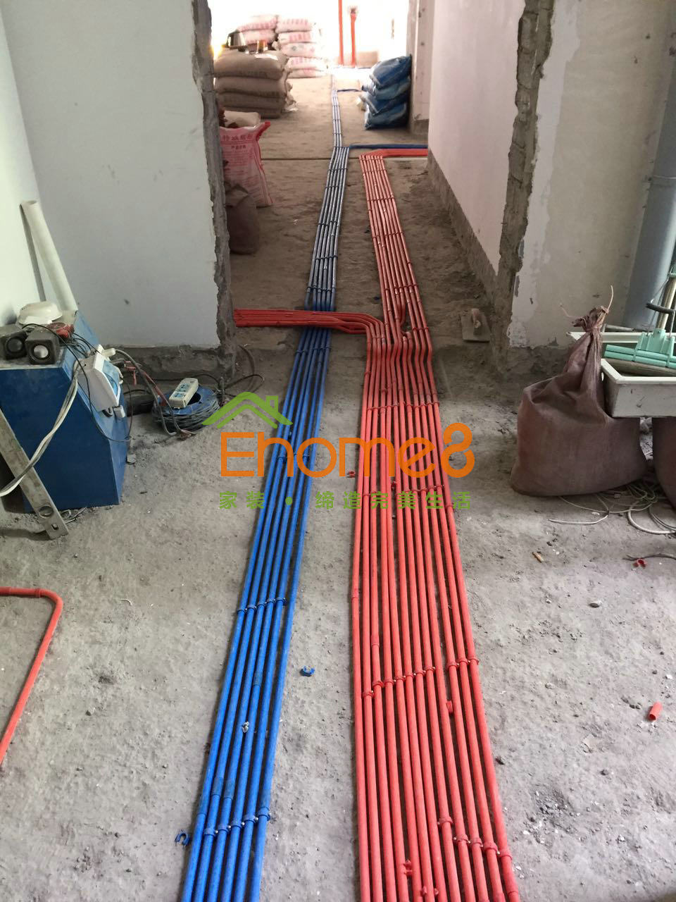 水電驗收通過,運送瓷磚及水泥砂漿等