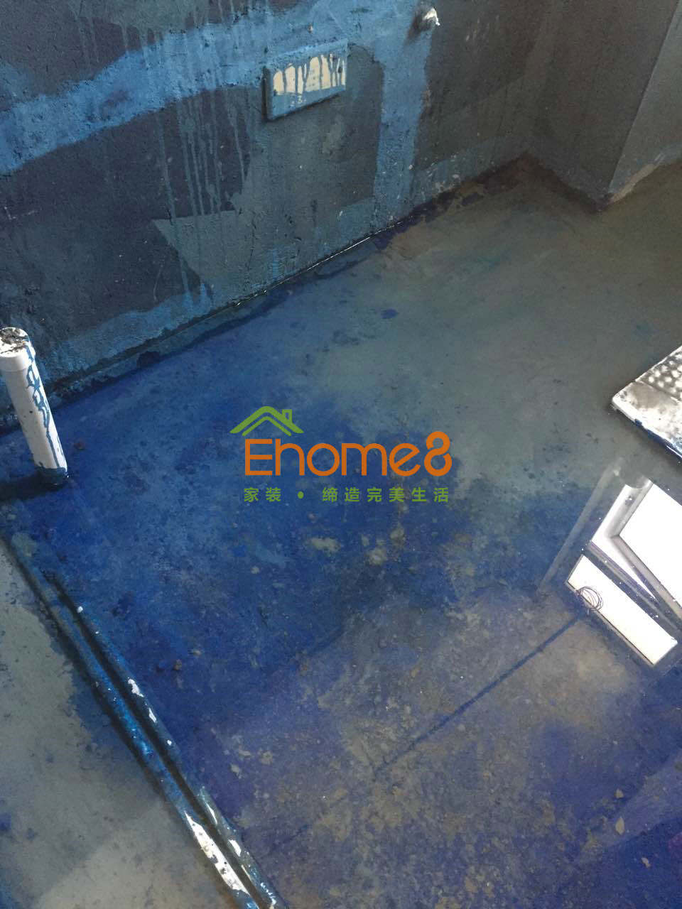 衛生間門安裝及衛生間有色防水的涂刷及閉水試驗,鋪磚完成。