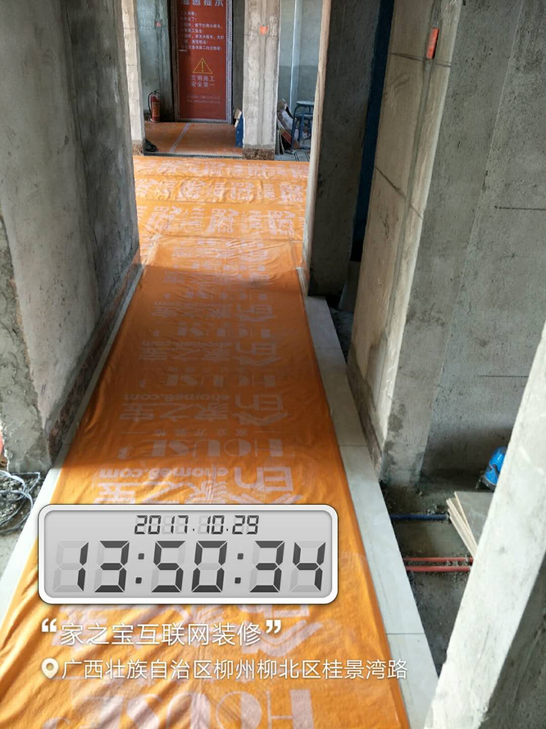 瓦工施工,平整對縫,鋪貼完畢即刻進行成品保護,鋪好地膜。