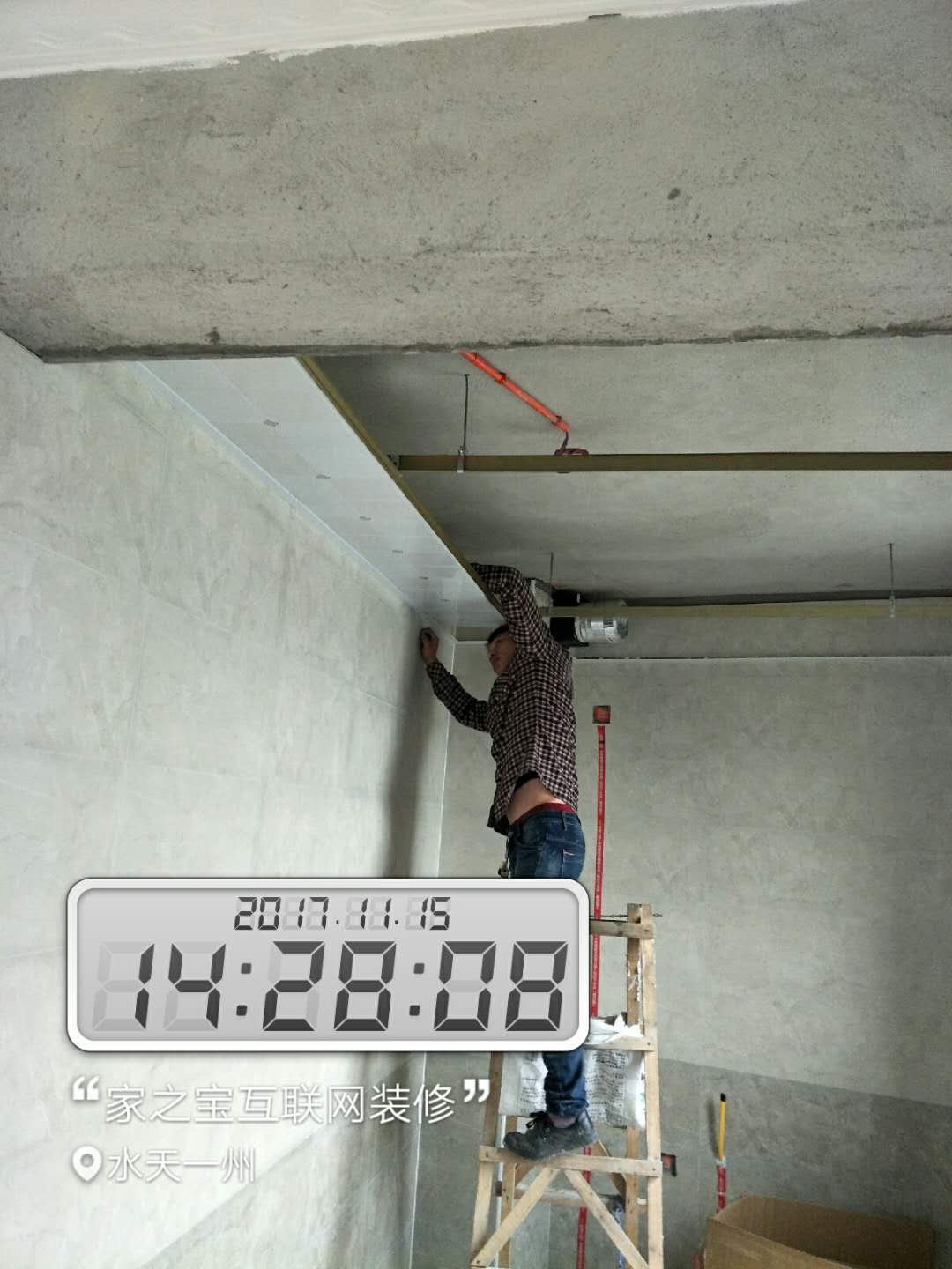 吊頂封板,對螺絲做防銹處理,涂上防銹漆。 刮膩子刮兩遍,打磨一遍,之后刷一遍乳膠底漆,兩遍面漆