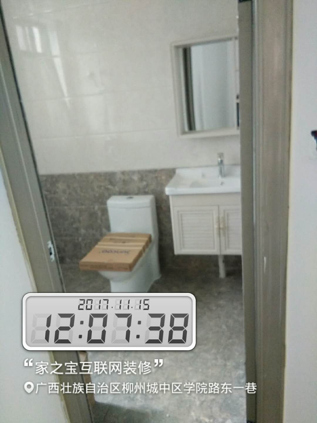 墻磚鋪貼,使用水平儀投射水平線,陽角處采用磨邊45°碰角工藝。